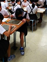 6年修学旅行 瓦制作中