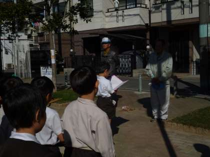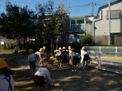 11月2日 秋も深まり落ち葉がふえる公園に3年生が公園清掃に出かけました。地域の方々との交流の一つの活動です。子どもたちがよく使う地域の公園をきれいにする取り組みです。地域の方々が事前にそうじ用具の準備をしてくださっていました。お礼のあいさつを代表の児童がして掃除を開始しました。みんな熱心に落ち葉や雑草、ゴミを集めて清掃活動をしました。