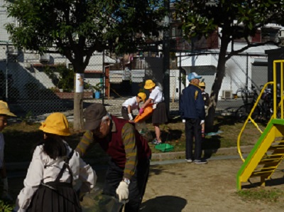 普段から地域の方々や老人会のみなさんに雑草ぬきや掃除をしていただきありがとうございます。公園清掃をとおして子どもたちは公共施設の一つとして大切にする気持ちが育ったことと思います。