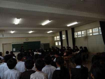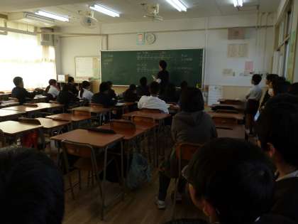 11月4日 5年生が相生中学校へ出向き、中学生の授業を参観させていただきました。今回は中学1年生の数学・理科・音楽の学習のようすを見ました。自分たちの先輩の真剣なようすを見て「むずかしい勉強をしているんだな。」と感じたようです。