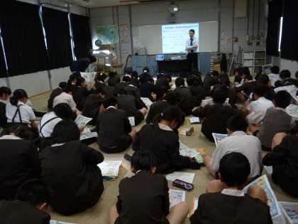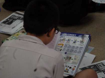 1月13日 出前授業で読売新聞社の方に来校していただきました、社会科「くらしを支える情報」の中から情報を伝える人たちの仕事のようす・社会での役割等を学習します。そこで、新聞社の方から『新聞ができるまで』『新聞社で働くひとたち』についてDVDや新聞から教えていただきました。子ども新聞をもらうとすぐ、自分の興味ある記事を熱心に読んでいました。みんなの写真を掲載した号外の新聞をいただき、制作の速さに驚いていました。その場で印刷できる車も見学させてもらいました。