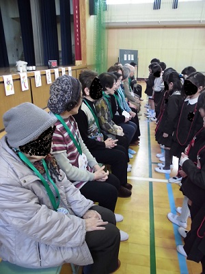 1月21日 楽しかった昔あそびは、あっという間に終わってしまいました。活動終了後、来校してくださった地域の方々にお礼の気持ちをこめて手作りメダルをわたしました。あたたかい雰囲気の会でした。ありがとうございました。