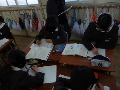 国語科の単元「いにしえの言葉」を学習しました。心に残った名言を選んで自分の体験と結び付けて考えたことをメモしました。メモしたことをグループで話し合い感想を交流しました。子どもたちは熱心に取り組んでいました。