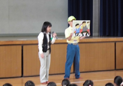不審者役(東成警察署員)が侵入して本番さながらの訓練となりました。教室では事前指導を受けて教室に犯人がすぐに入って来られないように入口を施錠したりバリケードをつくったりして静かに次の指示を待っていました。子どもたちは機敏に避難していました。避難後、警察署員の方から学校外での不審者対応で大切なこと、絶対に守ってほしいことについてお話があり、みんな熱心に聞いていました。