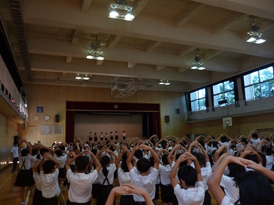 今日の児童集会は、集会委員会による「ちょうちんゲーム」でした。集会では初めてのゲームでした。最初、戸惑いもあったようですが、ひっかけの言葉で間違う子どもたちが増えてきてゲームの楽しさがでてきたようです。