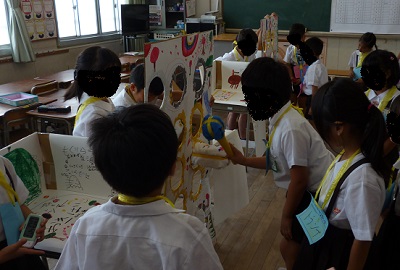 この日の土曜授業は、「神路っ子フェスティバル」を行いました。各クラスの工夫をこらした楽しい出し物のコーナーをたて割り班のグループでまわりました。リーダーの高学年がやさしく声かけをして仲良くゲームを楽しんでいました。