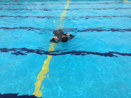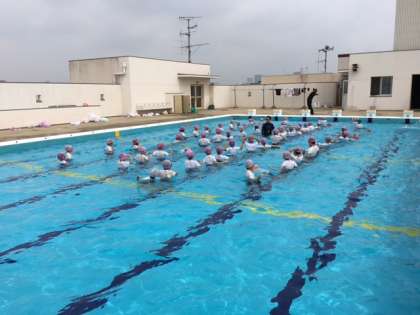 子どもたちは、いつもの水着の上から体操服を着て、水の中に入った途端に、