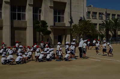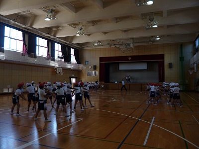 今年度はいつもより1週間早い2学期スタートでした。今週は、どの学年も運動会にむけて練習を始めています。ダンスの基本ポーズ・隊形移動・競技の並び方、やり方など活動の芯となる部分、基本を練習していました。たどたどしいところもありますが、一生懸命なようすが伝わってきます。