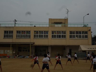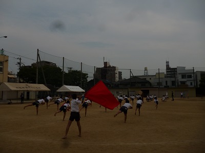 児童会が中心となって話し合った今年の運動会のめあては、『団結して 思い出に残る 運動会にしよう』です。みんなによく見える東館校舎の2階窓に掲示して士気を高めています。今日も応援団の子どもたちは、すばらしい運動会になるように練習に励んでいました。