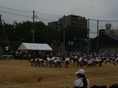 曲に合わせて力強く表現する4・5年生。練習の成果を思いっきり発揮していました。満足そうによい笑顔で踊っていました。
