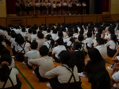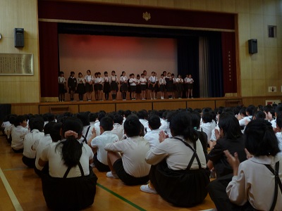 10月に入り、後期の児童会が始まりました。今日の児童集会で、後期児童会のメンバーと後期委員会の委員長・副委員長の自己紹介をしました。「後半の児童会行事を盛り上げるよう全力でがんばります。」「前期の経験をいかして後期もがんばります。」など意気込みを話していました。その言葉を聞いていたみんなからあたたかい拍手が自然とわきあがりました。