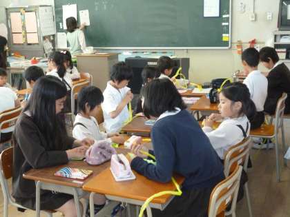 本校の縦割り班活動「神路っ子グループ活動」がスタートしました。5月7日(水)グループ編成をし、初めての顔あわせでした。それぞれの自己紹介をし、名札作成に取り組みました。何を書いてよいのか迷っている1年生に教えてあげる上級生。ひもがなかなか結びにくい低学年にやさしく手助けをする6年生。高学年はリーダーシップを発揮し、他の学年は協調性を養っていってくれることでしょう。