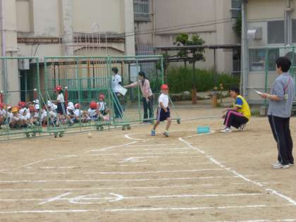5月14日・15日、二日にわけてソフトボール投げの測定をしました。扇型のエリアに1メートルずつ距離のめもりを入れた範囲にボールを投げ、距離を測ります。学年があがるにつれ腕力もついてきているようで、遠くまで投げることができていました。日ごろから運動をして体力をつけておくことがたいせつですね。