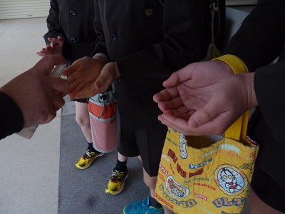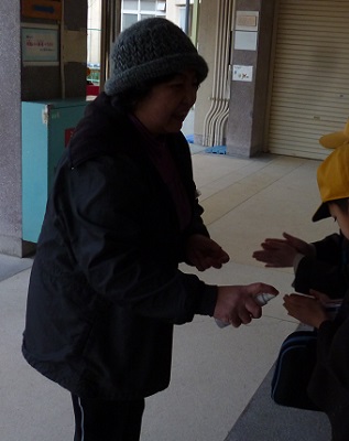 今週は手洗い・うがい強調週間です。寒さ厳しい折、体調を崩しがちな子どもが増えてきています。予防のひとつとして「手洗い・うがい強調週間」を設けて子どもたちに予防の意識を高め励行しています。登校時、保健教諭の先生に消毒液をもらって手を清潔にしてから教室にむかいます。休み時間には家から持ってきているコップでうがいをしています。