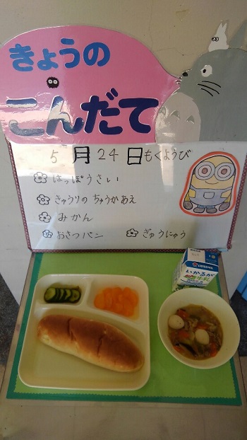 子ども達は「おいしい」と言って、おさつパンもおかずもパクパク食べていました。好評でした。