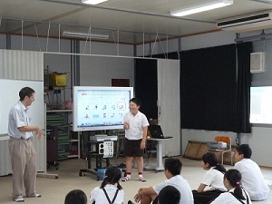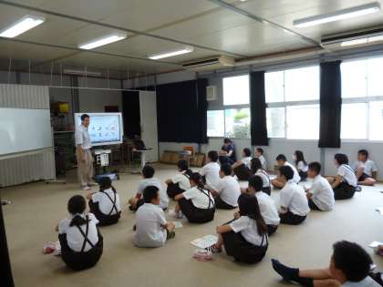 地域のNS(ネイティブスピーカー)さんから英語を教わっています。今日のレッスンは「Can you ○○?」「Yes,Ican./No,Ican't」「I can play basketball.」など『〜できます』を中心に身振り手振りをつかっての学習でした。笑顔の絶えない楽しい学習でした。
