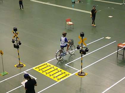 6月30日(土)に大阪府立体育館で開催された「交通安全子供自転車大阪府大会」に本校の6年生2名と5年生3名が参加しました。約1か月間、学習と練習を重ね、交通ルールに関する学科テストと自転車の運転マナーやハンドル捌きの技術を問う実技テストにチャレンジしました。初めての大舞台で緊張したのか、普段の力を十分に発揮できず、入賞することが叶わなくて、とても残念でしたが、沢山の大切な学びや経験ができたと思います。5年生のメンバーには来年もぜひ東成区の代表として出場してほしいと思っています。(校長)