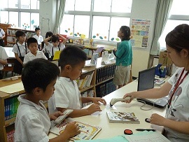 本年度から昼休みだけでなく、水曜日の20分休み(2と3校時の業間タイム)も図書室を開けています。本の貸し出しをしたり、自由読書をしたりしています。昨年度から始まった電子化を使って、本の貸し出し、返却・管理をしています。