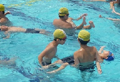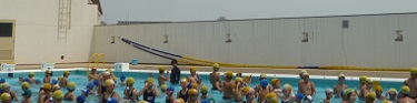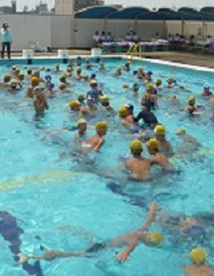 小学校のプールにも水慣れしてきた1年生と最高学年の6年生が一緒に入水して楽しく交流を行いました。6年生に手をとってもらい水に浮く感触を味わったりふし浮き・バタ足を教えてもらったりして水泳の基本を手助けしてもらいまそいた。また、6年生は、かわいい1年生の楽しそうな様子を見て、ほほえましくリードしていました。かっこいい6年生の泳ぎに「すごい。」と感嘆していた1年生です。