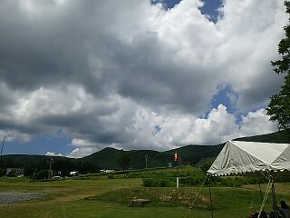 2時からは焼き板作りと高原遊びです。昼前には他校の児童を乗せた観光バスが続々と高原に到着、ハチ高原はとても賑やかです。気温は35度、昼からも風は爽やか、みんな元気です! 13:30