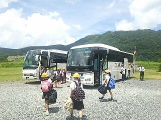 全ての活動を終えて閉舎式、お世話になったホテル谷常のご主人、ご家族、従業員の皆さんにお礼を言って帰りのバスに乗りました。ホテルの皆さんが手を振って見送ってくださっています。沢山の思い出作りのお世話をしてくださった谷常の皆さんありがとうございました。もっとハチ高原にいたかったけど、家族が待っている大阪に帰ります。
