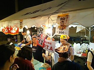日もすっかり暮れて「民謡総踊り」が始まりました。神路ふれあいまつりの熱気も最高潮です。PTAの模擬店ブース(焼きそば、フランクフルト)は息をつく暇もないほどの忙しさです。神路の子どもたちは、お家の人と一緒にゲームをしたり、くじ引きで大きなぬいぐるみや素敵な商品がもらえたり、冷たいかき氷を食べたりと楽しい夏休みの思い出ができましたね。