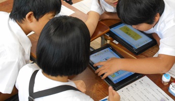 4年生が栄養教諭と、朝ごはんをおいしく食べるために大切な生活習慣について考えました。タブレットを2人1組で使用し、楽しく発表し、自分の生活リズムをふり返っていました。