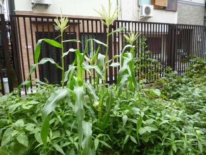 植物にとってこの雨季は大きく成長する時期です。一粒の種から2メートル以上にも大きくなった『ひまわり』を見て「先生より大きいな。」と、つぶやく1年生。「たくさんきゅうりができている。」「これ、とうもろこしになるんや。」と水やりや草抜きの世話をがんばっていました。