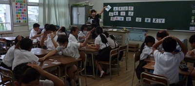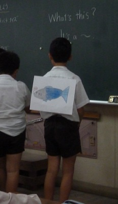 本日の学習参観で4年生と5年生が外国語学習に取り組んだ授業を保護者の方々に観てもらいました。4年生では、自分の名の頭文字のアルファベットを伝えたり、並べてあるアルファベットのカードを見つけあうゲームをしたりして楽しく英語に親しんでいました。5年生では、各グループが考えた英語のクイズを順に解き明かしていました。