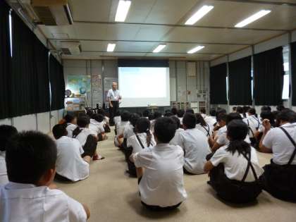 間違ったネットの使い方をすると大変なことになる『ネットのこわさ』についてお話をしていただきました。メールには表情がないため言葉の誤解から友だち関係が悪くなったり、写真や個人情報を安易にアップすると取り返しのつかないことになったりして、犯罪に巻き込まれる恐ろしさを映像から教えていただきました。携帯電話の使い方では家族とよく話し合いルールをきめることが大切であると教わりました。また「悩みや困ったことがあると一人で悩まないで家族に相談することが一番です。」と締めくくられました。