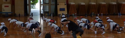 文化芸術による子どもの育成事業の一環として山本能楽堂さんからブレイクダンサーのプロの方に来ていただきました。はじめにプロの方の素晴らしい技を見せていただき、そのすごさに魅了していました。「僕たちにできるかな」と不安げなようすでしたが、少人数で少しずつ難易度をあげながら練習をしてできるようになり、楽しくなってきたようです。自信もついてきたのか、自主的に個々に練習をしはじめていました。最後、みんなでリズム曲に合わせながら楽しくダンスをしていました。90分間があっというまに過ぎたようです。