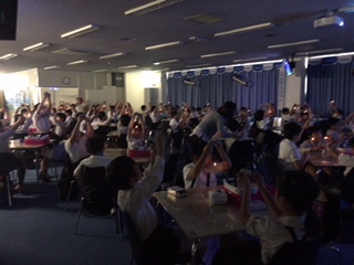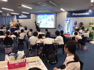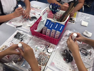 電池の歴史やしくみ等を学習した後、電池づくりの体験をしました。慎重に二酸化マンガンを容器に詰めたり、丁寧に炭素棒を入れたり、出来上がった乾電池のまわりに自分でかいた絵のラベルを張ったりして「オリジナル乾電池」を完成させました。豆電球をつなげてみんなで点灯式をしたときには、歓声があがりました。