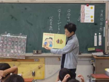 「けんかともだち」という絵本をよんでいただき、子どもたちは静かに聞き入っていました。自分でも手に取って楽しく読んでほしいと思います。