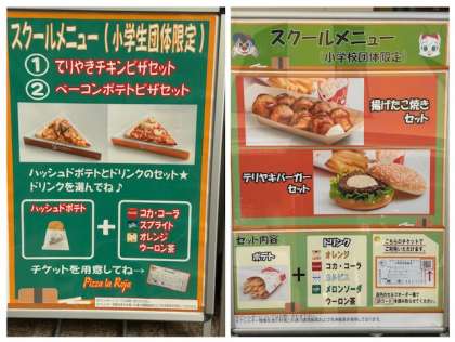 いくつかのアトラクションを楽しんだ後、ミールクーポンを使ってスクールメニューを注文することになります