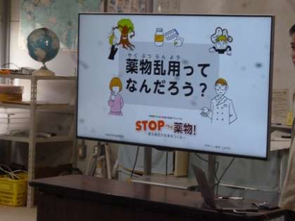 薬の正しい飲み方や、薬物乱用の危険について薬剤師先生から教えていただきました。