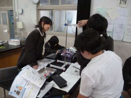 グループで正確な実験結果を出すために、協力して進めていたようです。