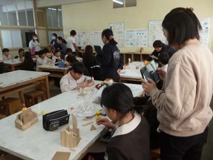 組み合わせた立体を友だちが見て、意見交換しながら更にイメージを膨らませていきました。