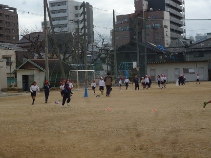 どの学年も体育の時間に自分に合ったペースで走っています。