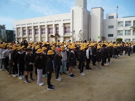 教室に映し出したモニターで全校朝会をしてきましたが、3月に入り、運動場に集まっての朝会を久しぶりに行いました。