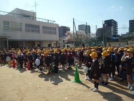 9:10学級編成、教科書配付、学級指導などを終えて11:35頃下校します。