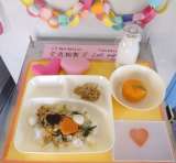 給食の献立は、中華丼、もやしの中華あえ、みかん、牛乳です。みんなが楽しく食べら...