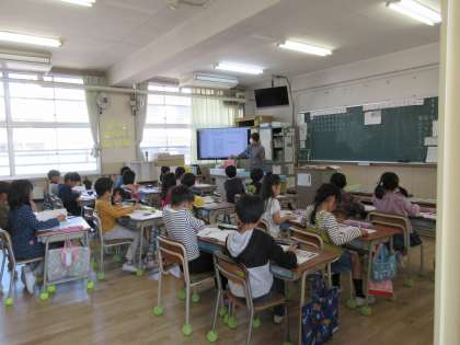 今日から本格的に学習が始まりました。暖かな良いお天気の中体育で鬼ごっこをしたり(3年生)教室では算数のお勉強(2年生)をしたりしています。
