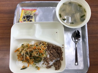 献立:ビビンバ、トック、いり黒豆、牛乳