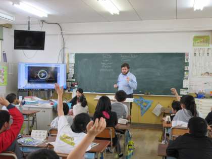 3年生から6年生までは担任の先生とC-NETの先生と一緒に外国語の学習を進めていきます。今年はジェームズ先生が来てくださっています。ジェームズ先生はアメリカから日本に英語を教えに来てくださっています。今年はアドバイザーとして藤井先生も来ていただくことになりました。