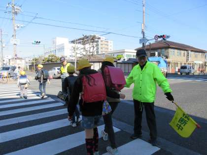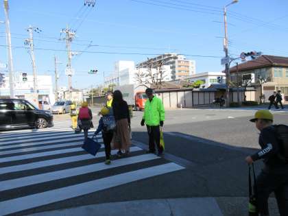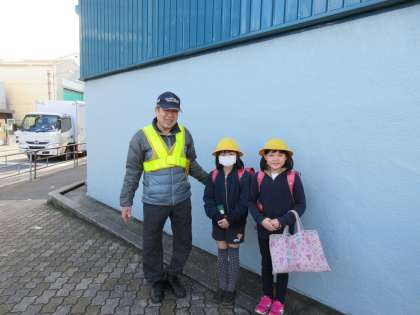いつもみんなの登下校を見守ってくださっている深江地区の見守り隊の皆様です。校区内の交差点などで多くの方が児童の安全を見守ってくださっています。
