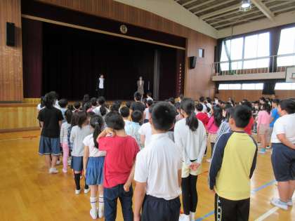 今日から児童集会が始まりました。縦割り班で様々な活動をしたり、委員会活動の発表をしたりする予定です。