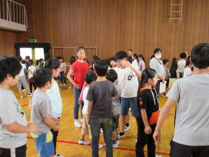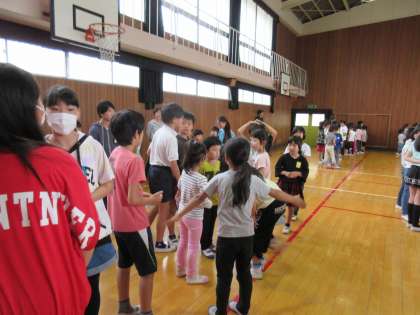 今日は集会委員会の並び方競争のゲームでした。背の順で並んだり、誕生日順に並んだりみんなで声を掛け合いながら並んでいました。
