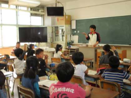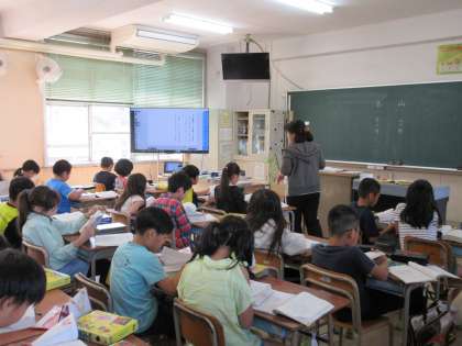 4年生は、先生のお話を聞いてしっかりと学習しています。国語の学習や漢字辞典の使い方を練習しています。