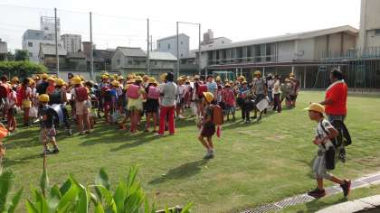 2学期初めての地区別集団下校を行いました。今回は通学路や子どもたちの下校の様子を確認するため、担当の先生も一緒に下校しました。