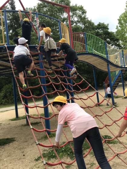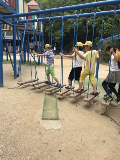 遊具は滑り台だけではなく、様々な形のものや、ぶらざがって移動できるものなどたくさんありました。みんないろいろな遊具に挑戦していました。